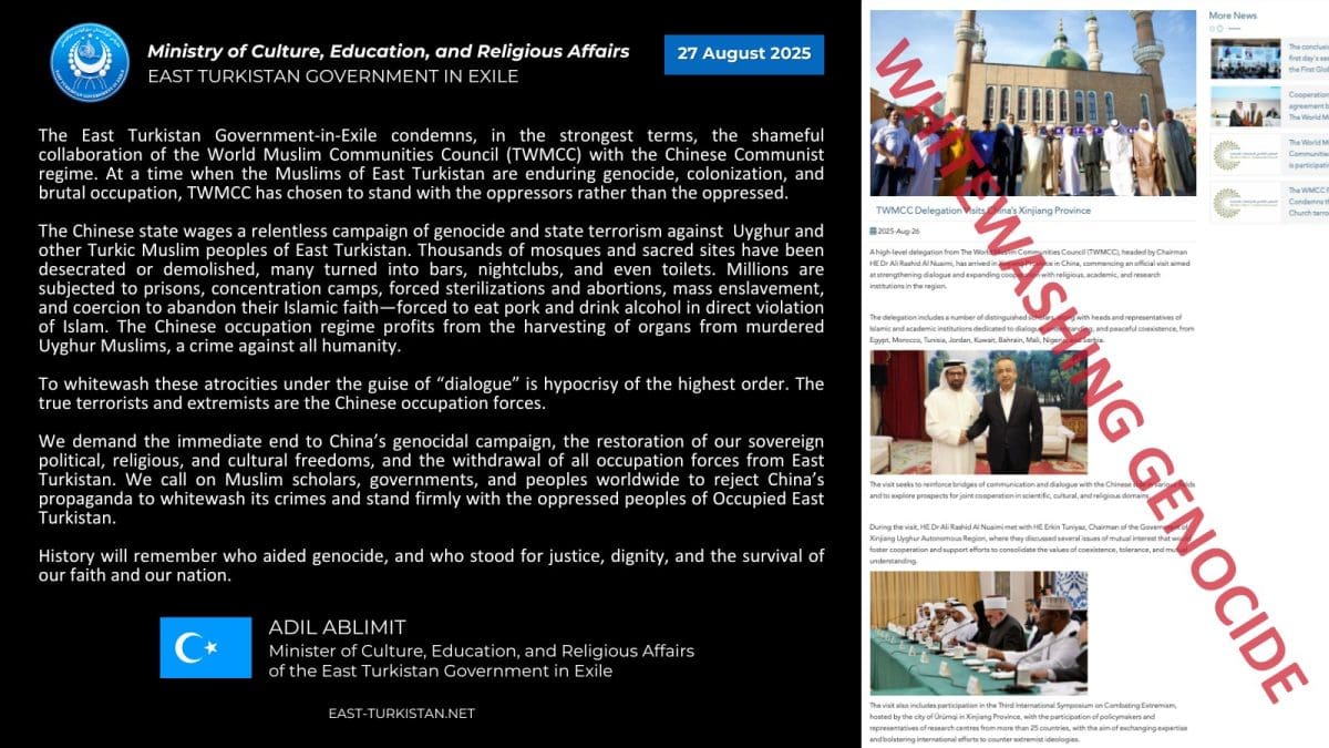 East Turkistan Condemns Alleged Türkiye–China Plan to Transfer Uyghurs
