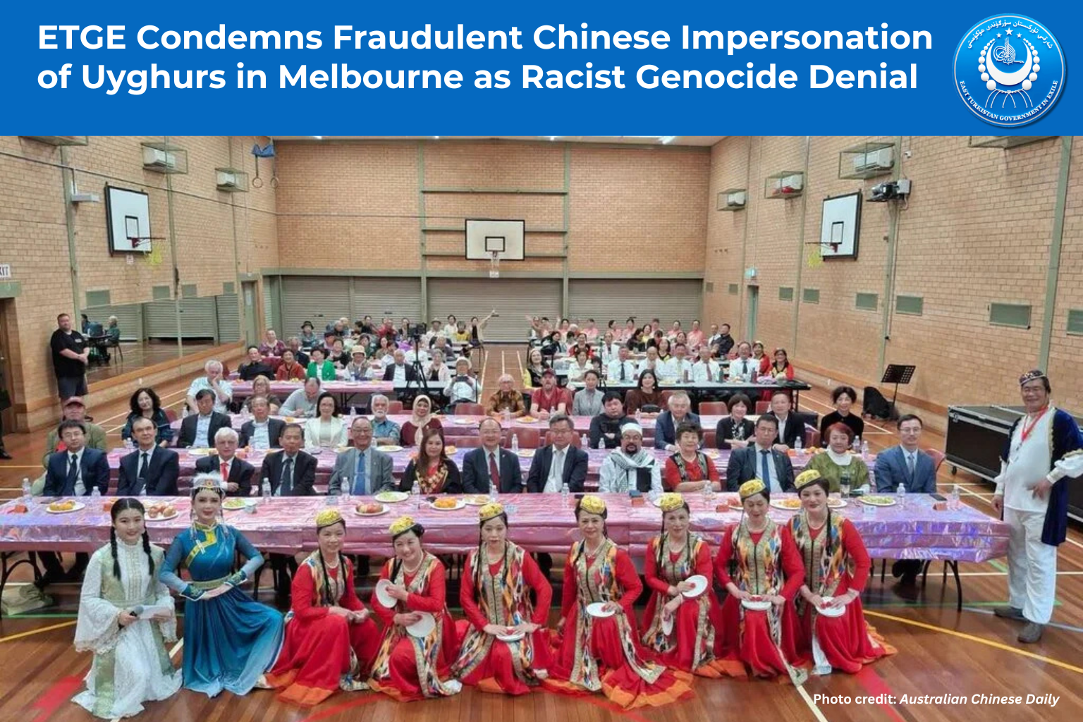 The East Turkistan Government in Exile (ETGE) unequivocally condemns the Chinese government’s state-sponsored propaganda event held on April 9, 2026 at Noble Park Community Centre in Melbourne, Australia, where ethnically Chinese state proxies fraudulently dressed as Uyghurs and other Turkic peoples to deceive the Australian public and the international community, and whitewash the Chinese government’s ongoing genocide and colonial occupation of East Turkistan.